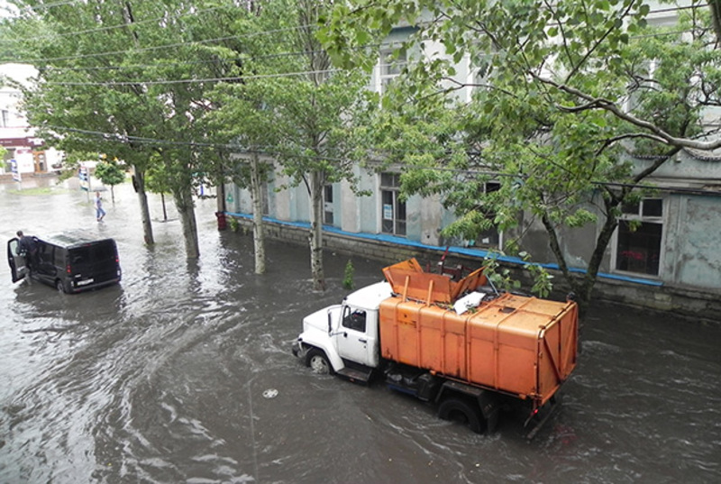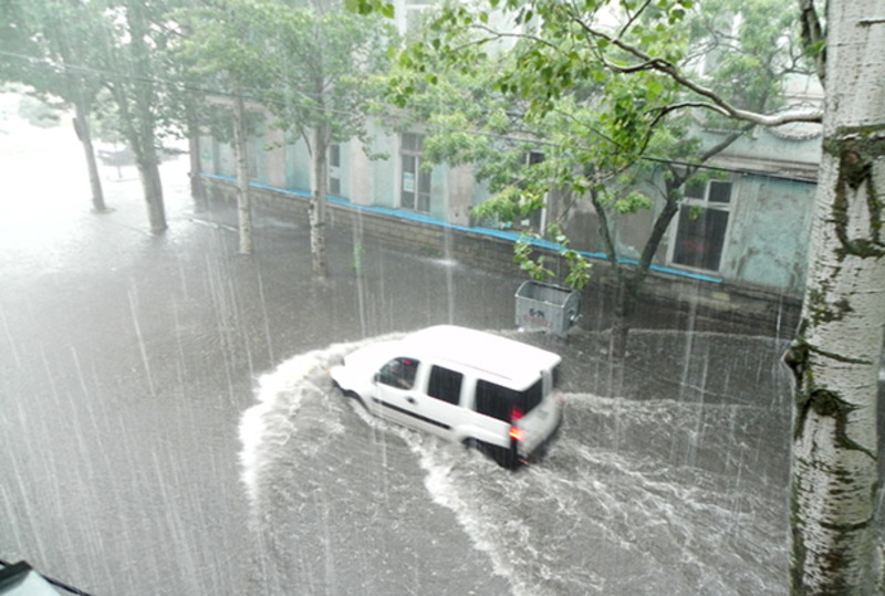 За полчаса бушующая стихия превратила многие районы города в настоящие озера. Полностью залило центр Бердянска. Не справлялись с напором воды ливневые канализации. За два часа выпало 44 мм осадков, что является почти месячной нормой для этого города в данное время года.