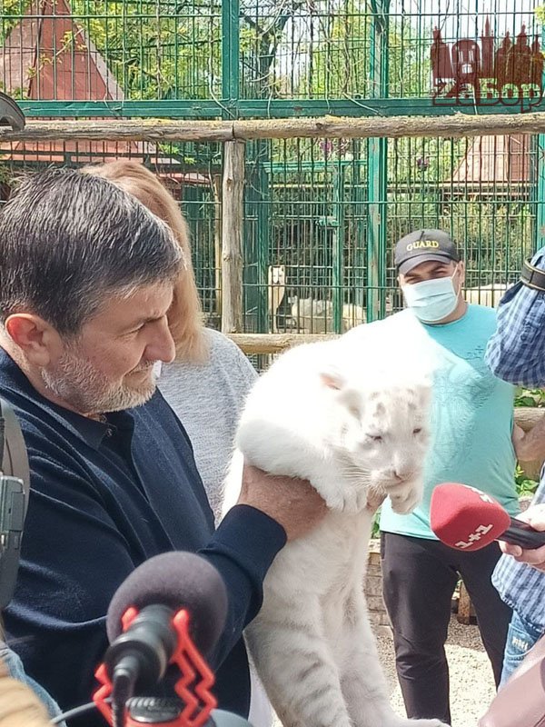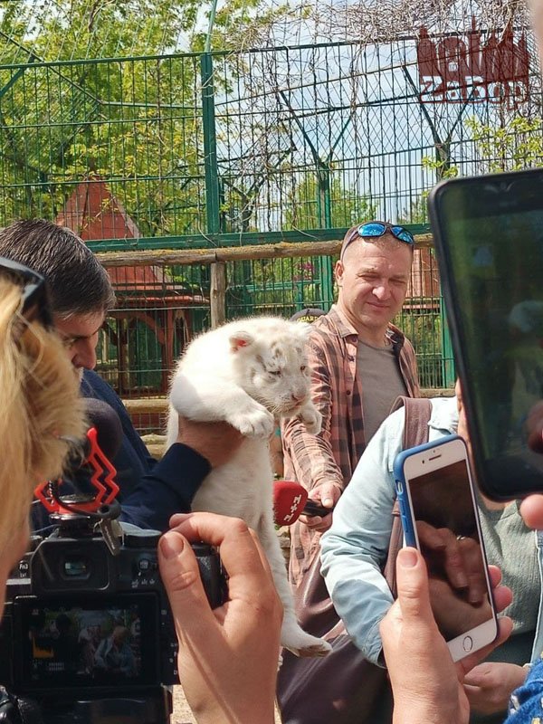 Белые тигры являются одной из достопримечательностей бердянского зоопарка "Сафари". Так, недавно здесь появились на свет два белых тигренка: мальчик и девочка. Им всего 1 месяц и 2 дня от роду. Белых хищников показали журналистам и даже дали их потискать. Этот процесс явно не пришелся тигрятам по вкусу.