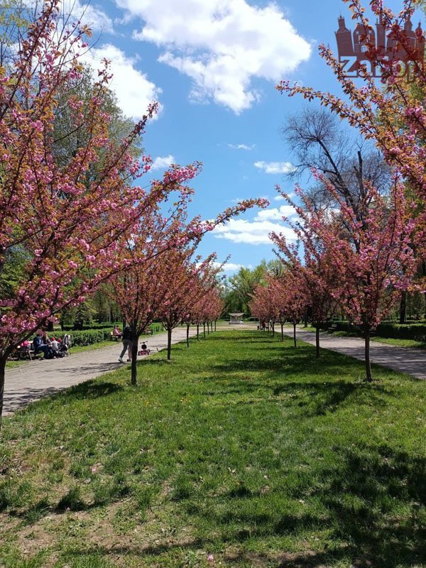Стоит отметить, что в Запорожье есть несколько аллей сакур. Самая первая появилась на ДЖД, а позже были высажены сакуры и на площади Маяковского. А в 2012 году самая большая аллея сакур появилась в центральном парке города. Сакуры высадили по инициативе Виктории Чикаловой, которая тогда была директором "Дубовки".