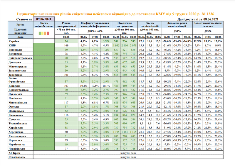При этом стоит отметить, что в "зеленую" зону переводит Минздрав, но окончательное решение должна принять госкомиссия ТЭБ и ЧС. После ее решения все области официально станут "зелеными".