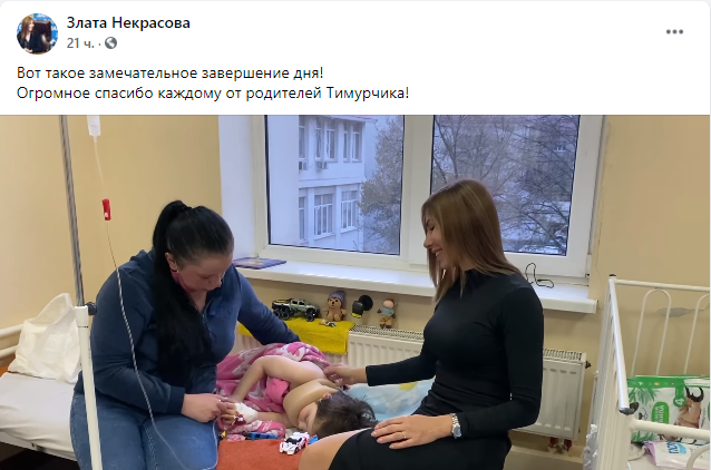 30 апреля Тимура перевели из реанимации в обычную палату. Состояние мальчика сейчас стабилизируется. Так, Злата Некрасова отмечает, что ребенок улыбается, играется игрушками и смотрит мультики. "Тимурчика сегодня перевели в палату. Он улыбается, он играет игрушками, он смотрит мультики", - говорит Некрасова.