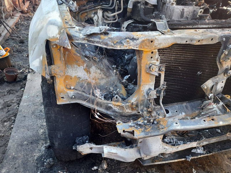"Ну я только могу сказать то что топливная система не пострадала, она вообще с другой стороны (началось примерно около правой фары, там очень обгорело), аккумулятор тоже с другой стороны, горело что-то другое. У меня дизель, газа, бензина нет. Хлопок/взрыв был ровно в 00.00. Пожарные вовремя приехали, пламя начало уже на гараж перекидываться".
