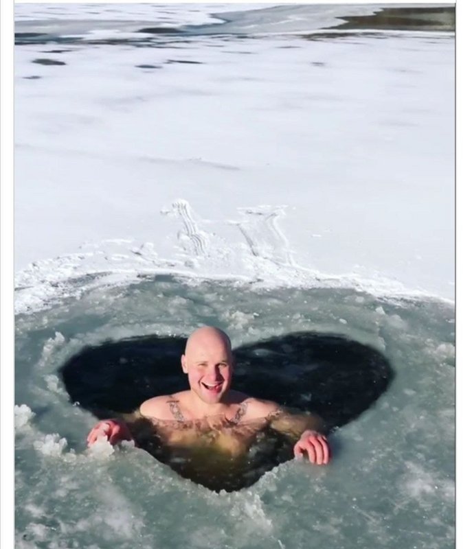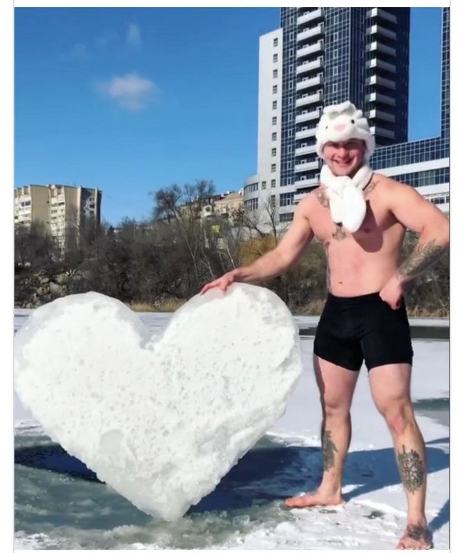 Так, Станислав Скочко экстримально поздравил своих подписчиков с Днем святого Валентина. На пруду в карьере возле "Хортица Палас" спортсмен вырубил изо льда сердце, в качестве подарка всем влюбленным. После этого, прыгнул в ледяную прорубь, стоит отметь, что на улице был десятиградусный мороз.