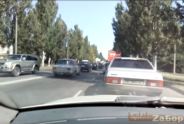 Так, сегодня, 23 августа, на объездной дороге по ул. Ломоносова в Мелитополе, с часу дня наблюдалась автомобильная пробка. Некоторые машины, чтобы сэкономить время,даже умудрялись ехать по тротуару.