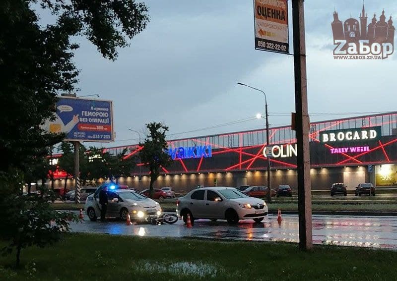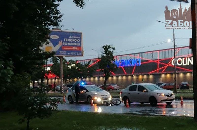 В Запорожье на Набережной столкнулись легковушка и мотоцикл: есть пострадавшие (фото, видео)