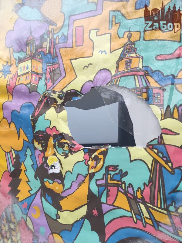 А возле ТЦ "Украина" ситилайт с Яковом Новицким вообще разбили.