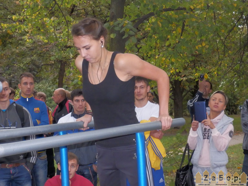 Сегодня, 21 сентября, в Запорожье в парке с 13.00 до 17.00 в парке по ул. Патриотическая,74а открыли новую спортивную площадку, которая включает в себя турник, брусья, и лестницу. Там же прошли мастер-классы и соревнования любителей Street Workout.