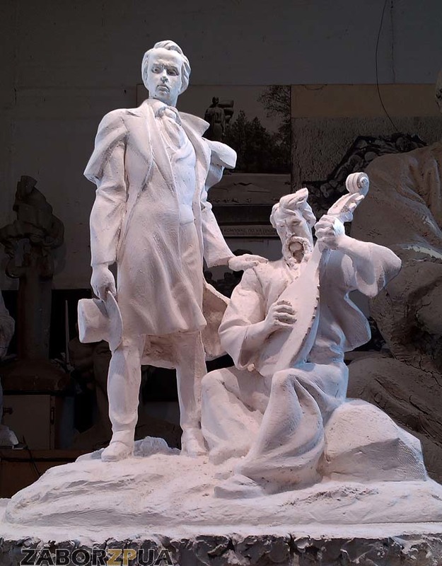 По задумке скульптора Владлена Дубинина, запорожский памятник украинскому поэту – это 20-летний Шевченко, каким он посещал Александровск и Хортицу, и кобзарь у его ног. Стоимость данного памятника 2 млн. 100 тыс. грн. Срок исполнения – полгода.