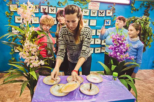 "Мы готовим им банановое пюре с апельсиновым соком. Рассыпаем его на тарелочки и подсаживаем красавиц к лакомству. Некоторые, видя расставленные тарелочки, даже если они пока пусты, слетаются к столу, усаживаются и ждут", - говорят сотрудники выставки.