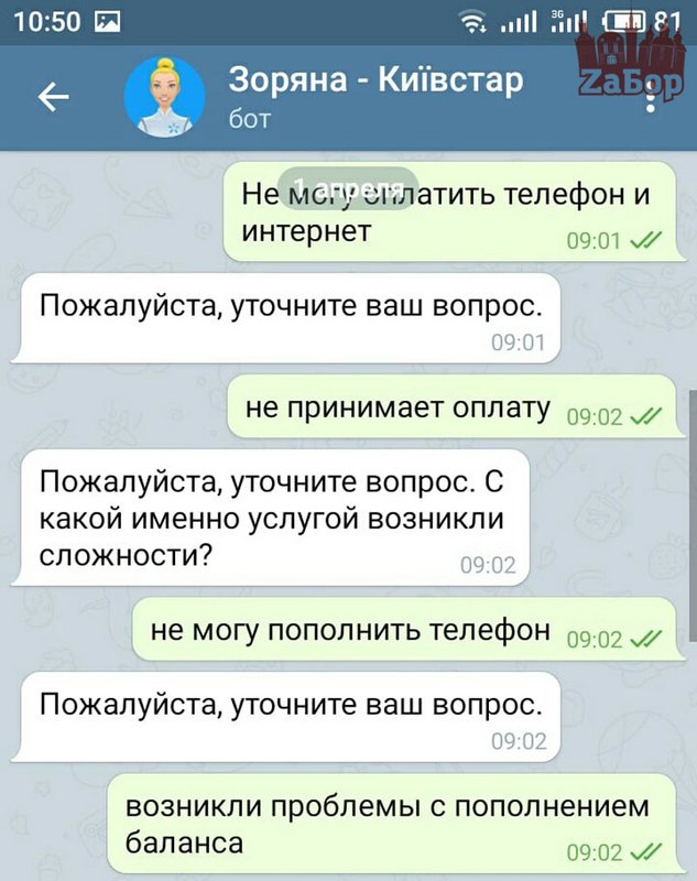 С вечера 31 марта и на утро 1 апреля пользователи компании "Киевстар" не могли воспользоваться услугами оплаты связи и ещё рядом сервисов. В "Киевстаре" объяснили из-за чего у них возникли проблемы, передает "ZаБор".