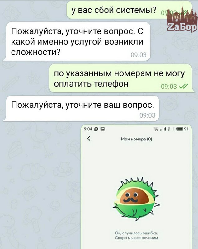 Бот компании также не помог решить проблему. Так, в ответ на вопросы приходило: "Пожалуйста уточните ваш вопрос".
