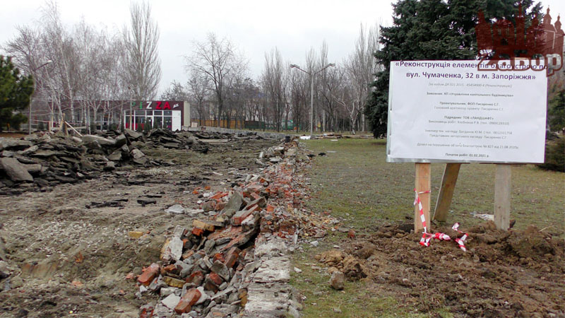 Также, было принято решение реконструировать и площадь перед районной администрацией Запорожского городского совета по Коммунарскому району, с которой начинается парк.