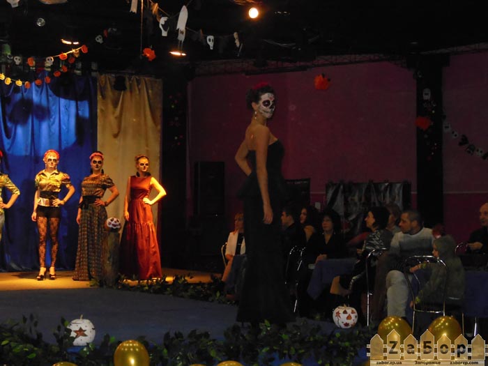 Там же прошло несколько показов одежды от "Сан-Дресс". Девушки-модели были загримированы в нечисть.