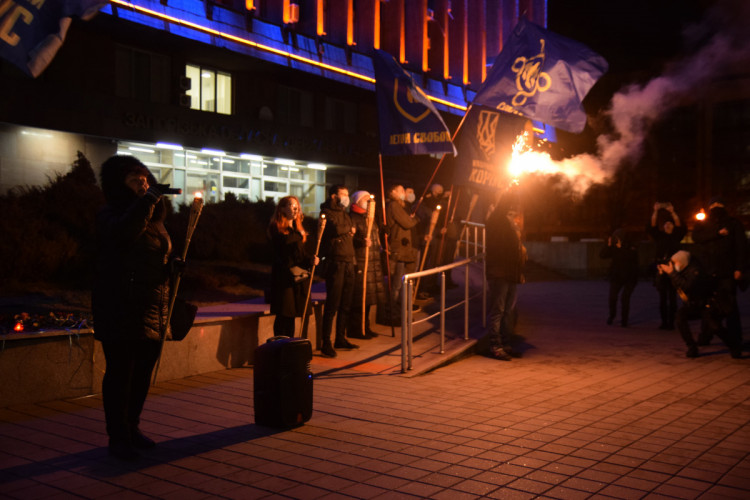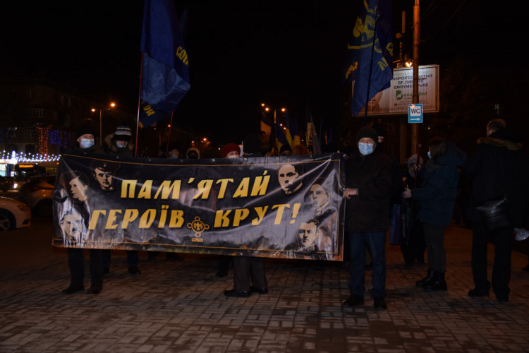29 января более сотни запорожцев с патриотическими лозунгами и факелами прошли от площади Маяковского до Майдана Героев в честь памяти Героев битвы по Крутами. Об этом сообщает "Depo.Запорожье" .