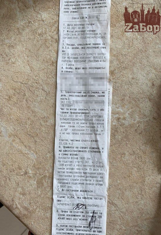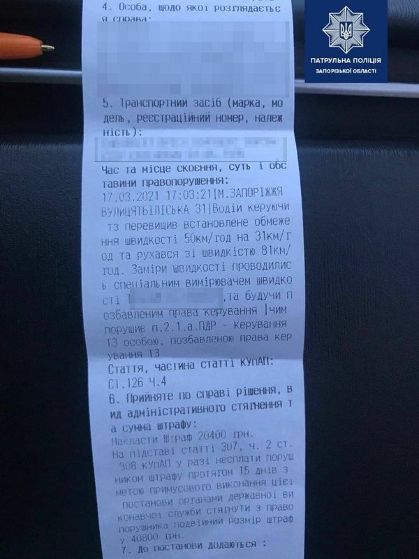 В Запорожье стали выписывать штрафы водителям по новым тарифам: в первый день максимальный штраф превысил 20 тысяч гривен (фото)