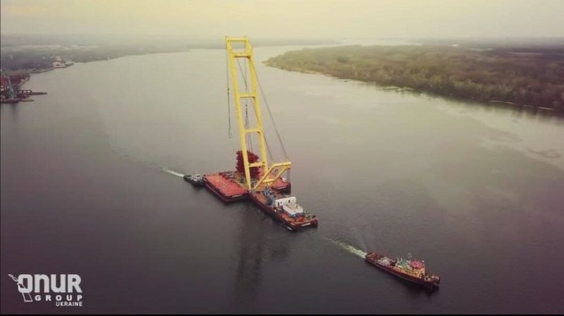 Плавкран "Захарий" прибыл к месту строительства вантового моста.