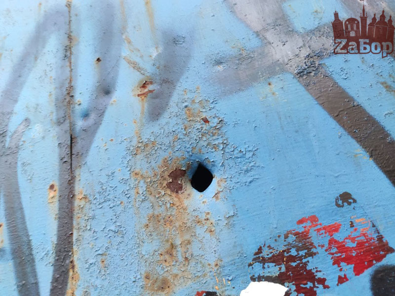 Так, "ZаБору" очевидцы рассказали, что в мае возле фигур видели троих человек. А чуть позже были слышны выстрелы, как по металлу. На месте события побывал корреспондент "ZаБора". На железных фигурах по следам от пуль было видно, что стреляли из травмата и боевого пистолета, поскольку пули прошли напролет. Причем явно видно, что стрельбы проводились не один уже раз.