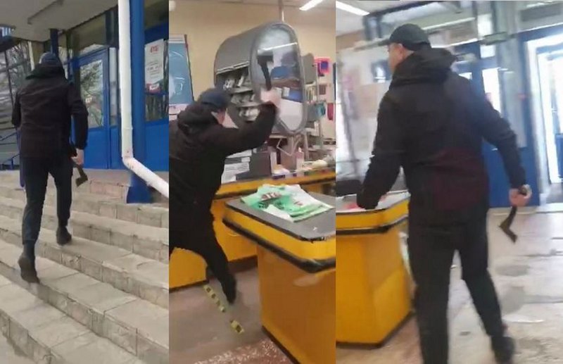 Подобный трэш был и в Мариуполе. Тут обиженный мужчина начал топором громить супермаркет "АТБ". Как оказалось, он мстил за жену, которой сделали замечание, что она пришла в магазин без маски. Так, мужчина был без маски, начал быть топором кассы и громко матерился.