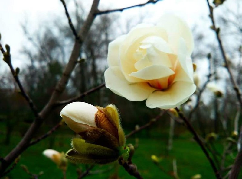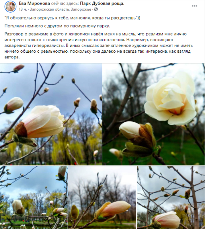 В парке отдыха "Дубовая роща" на днях распустились магнолии, которые высажены вдоль пруда . В 2019 году дерево начало распускаться 8 апреля. А в начале сентября 2019 дерево зацвело повторно.
