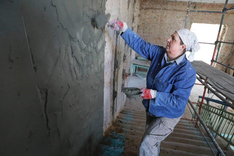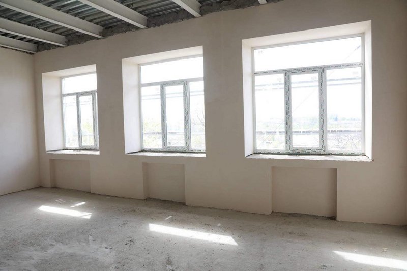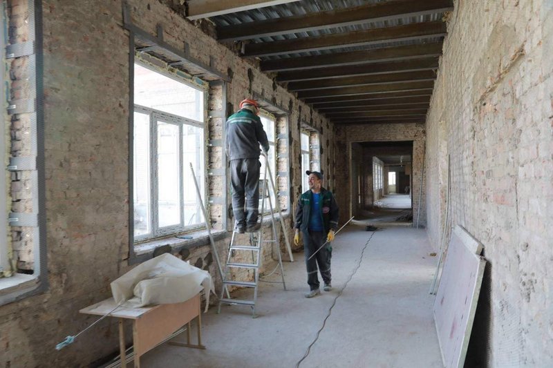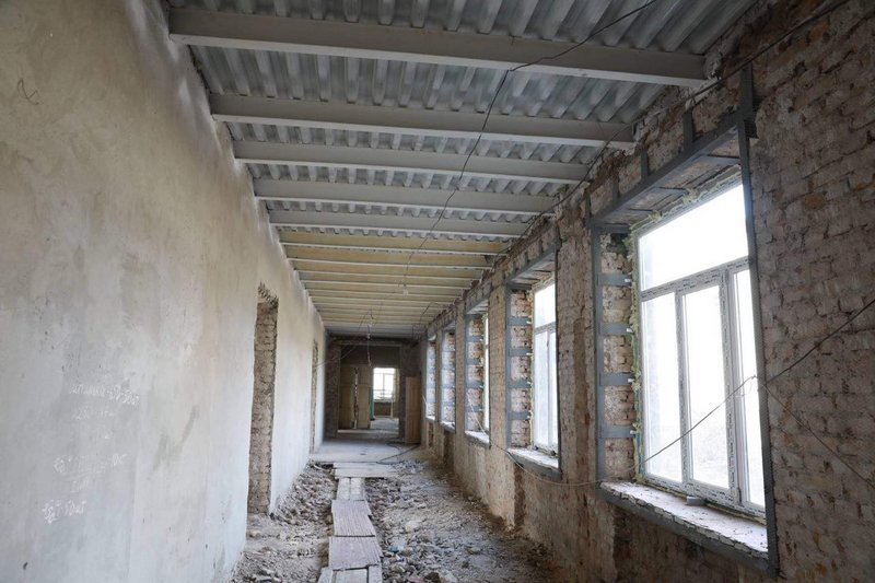 Так, состоянием на 2 февраля были произведены демонтажные работы, установили монолитный каркас перекрытия между этажами, штукатурные работы в спортивном зале. Продолжался ремонт кровли, монтаж перегородок в помещениях, монтаж электрических сетей, завершалась установка металлопластиковых окон.