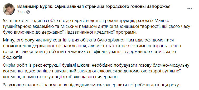 Стоит отметить, что школу должны были восстановить еще в 2015 году за средства городского бюджета, однако работы начались только в августе 2020 года. Но мэр Владимир Буряк заявил, что реконструкция школы №53 финансируется за счет государственной программы "Надзвичайна кредитна програма для відновлення України". Так, мэр отмечает, что в прошлом году государственное финансирование было урезано. Однако городу удалось добиться его продолжения.