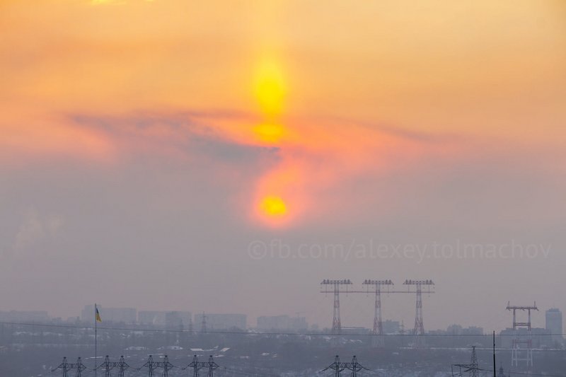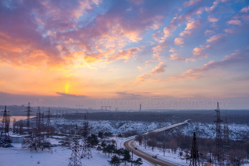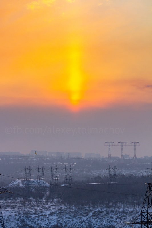 Утром 18 января, фотографу удалось запечатлеть на фото необычный рассвет. Так, Алексей Толмачев зафиксировал красивое атмосферное явление – солнечный столб.