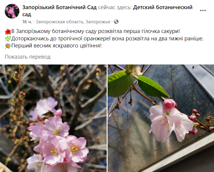 31 марта в Запорожской детском ботаническом саду зацвела сакура. Первые цветы распустились на две недели раньше, чем должны быть. Об этом стало известно на странице Фейсбук ботанического сада.