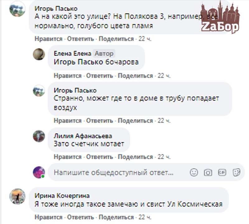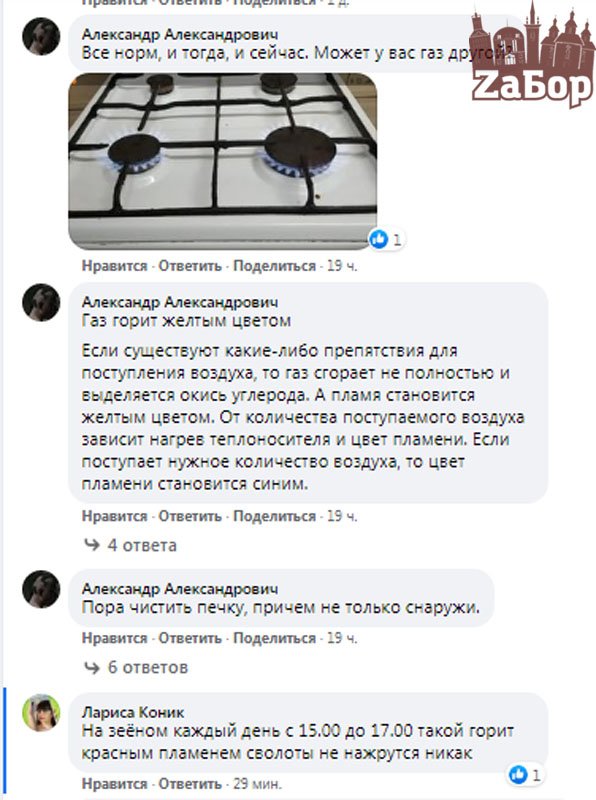 Жители Космоса также подключились к дискуссии о качестве поставляемого газа, они отмечают, что топливо имеет желтый цвет, а иногда даже просвистывает.