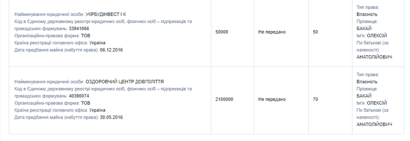 Кроме этого, он имеет корпоративные права на компании "АБАД", "АББА", "Азовгідробуд", "Алекс", "Укрбудінвест", "Оздоровчий центр довголіття", с которых получает очень хороший процент.