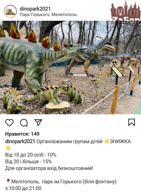 При этом, вход для организатора бесплатный. Об этом стало известно на странице парка в соцсети. Опубликован пост со скидками был также вчера, как и информация о закрытии запорожского "Динопарка".
