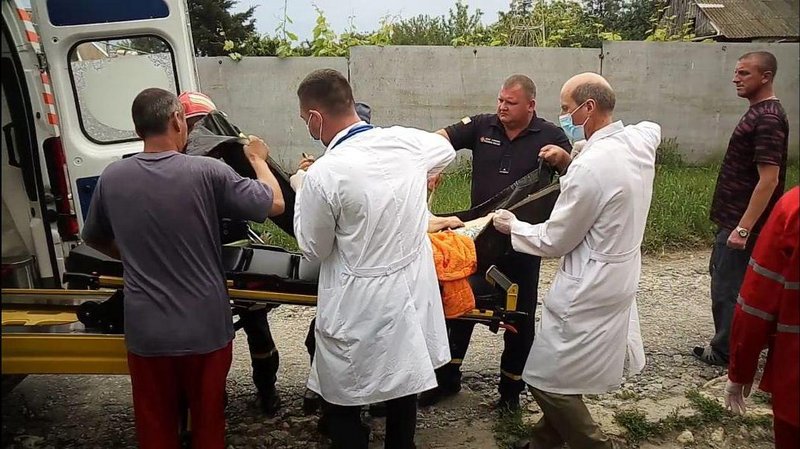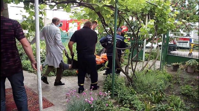 Спасатели с помощью носилок транспортировали пострадавшую в машину Скорой помощи.