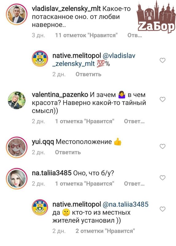 Правда местные жители не в восторге от новой инсталляции. Так, горожане в комментариях под постом пишут, что местоположение у фотозоны не самое удачное, рядом находятся люки и дом, фасад которого нуждается в ремонте. Также жители Мелитополя отмечают, что сердце какое-то "потасканное" и совсем не выглядит новым.