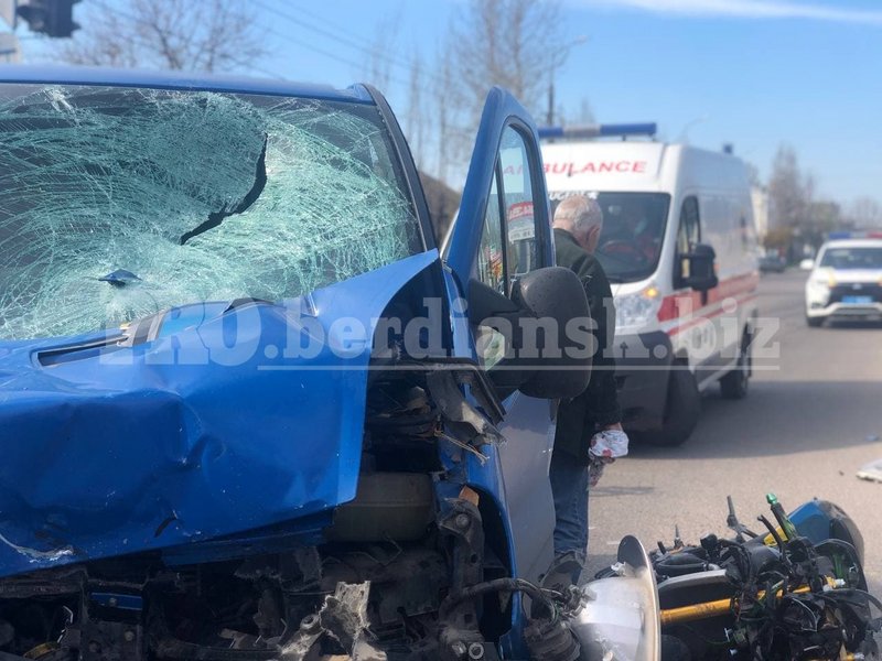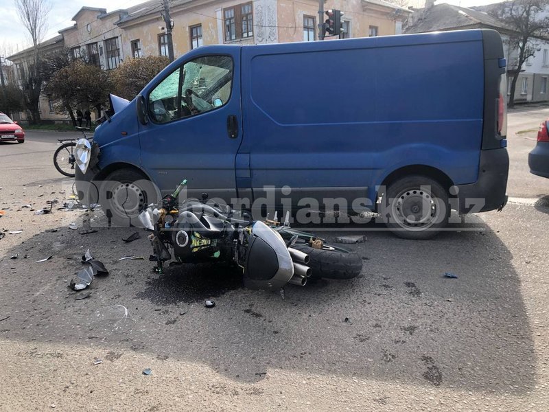 Серьезная авария произошла вчера в городе Бердянск Запорожской области. Тут мотоцикл "Kawasaki" врезался в автомобиль "Opel", передает "ZаБор".