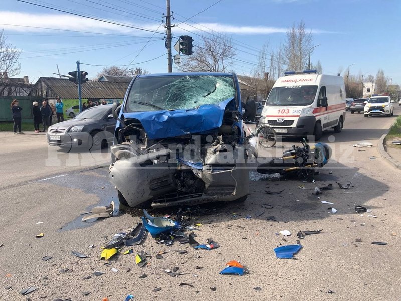 В Запорожской области произошло жуткое ДТП: после столкновения, водитель и пассажир мотоцикла перелетели через микроавтобус (фото, видео)