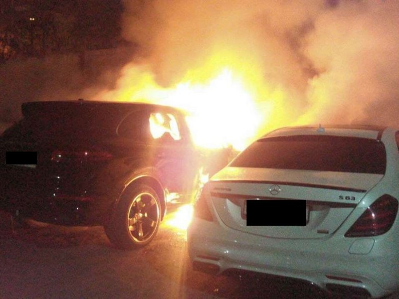 На месте события спасатели установили, что горит моторный отсек и салон автомобиля "Porsche Cayenne" общей площадью 3 кв. м и моторный отсек и передняя часть салона "Mercedes-Benz", площадью 3 кв.м.