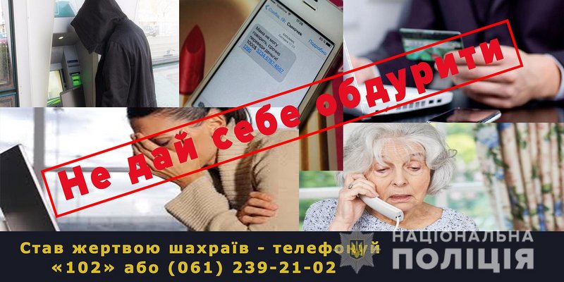 На днях в Энергодаре неизвестный позвонил женщине и сказал, что ее сын якобы попал в ДТП, за деньгами пришел неизвестный мужчина и ему она отдала крупную сумму. А в Запорожье молодому человеку, мошенники сообщили, что его банковская карта повреждена и для того, чтобы сохранить свои деньги, он перевел их на чужой счет. Об этом сообщают в пресс-службе Нацполиции, передает "ZаБор" .