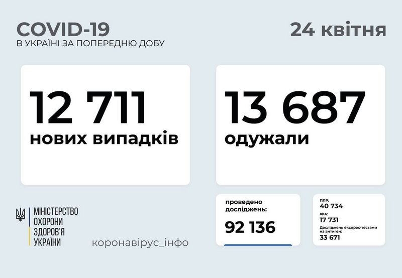 - осуществлено тестирований за сутки – 92 136 (в частности методом ПЦР – 40 734, методом ИФА – 17 731).