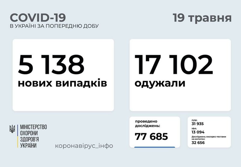 - осуществлено тестирований за сутки – 77 685 (в частности методом ПЦР – 31 935, методом ИФА – 13 094).