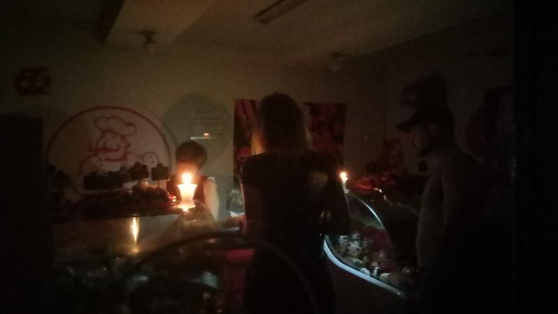 Торговцы работают при свечах. Такая себе романтика среди будничного рабочего дня. Когда в пешеходном переходе появится свет продавцы не в курсе.