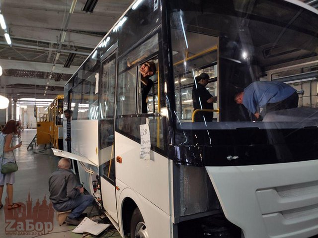 На предприятии также была проведена экскурсия на сборочный цех, где показали, как собирают автобусы. По сути, их собирают вручную, конвейер не работает. Представители ОГА пошутили, что в Запорожье автобусы собирают, как элитные авто на Западе.