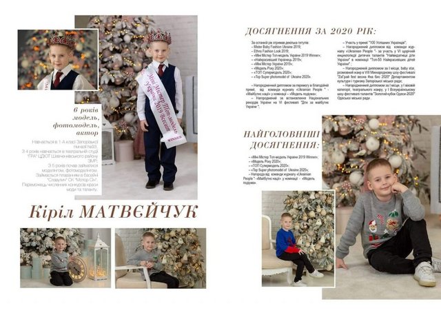 Кирилл ученик 1-го класса Запорожской гимназии №93. За 6 лет он уже успел достичь больших высот в своей карьере. Так, школьник занимается моделингом и актерским мастерством.