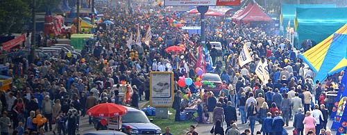 6 октября на Набережной в Запорожье прошла очередная ежегодная Покровская ярмарка. Людей было много... Немного о "Минусах" праздника. Плохо был организован подвоз людей на ярмарку - мало специальных маршруток. Трудно было, как приехать, так еще труднее и уехать. Цены на ярмарке с каждым годом растут. Если раньше они были ниже магазинных, то теперь наоборот. Так, к примеру, если обычная кока-кола в магазинах стоит порядка 3 грн., то на ярмарке она продавалась по 3.50 грн. |