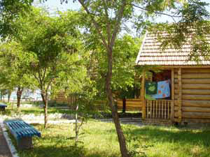 деревянные домики-срубы на семью. Две комнаты - спальня и гостиная с