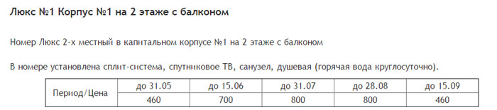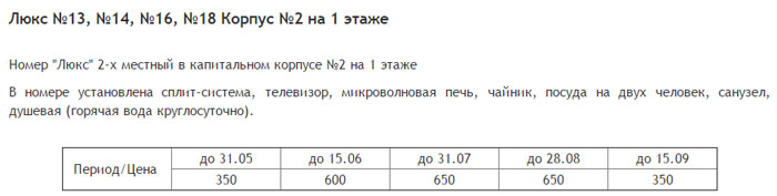 Все номера "Люкс" располагаются в капитальных зданиях на первом и