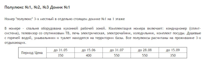 номера Полулюкс рассчитаны на проживание 3-х отдыхающих.