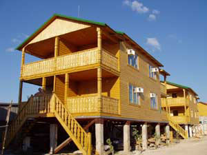 Проживание: 2-х этажные деревянные коттеджи (из бруса) с 2-х, 3-х, 4-х
