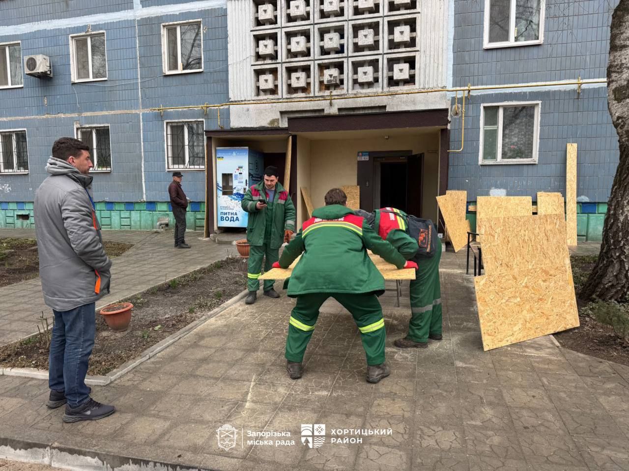 Нині комунальники проводять першочергові відновлювальні роботи: закривають вибиті вікна плитами OSB. Також на локаціях задіяні підрозділи КСВАРС, ДСНС, Національної поліції та Департаменту соціального захисту населення.