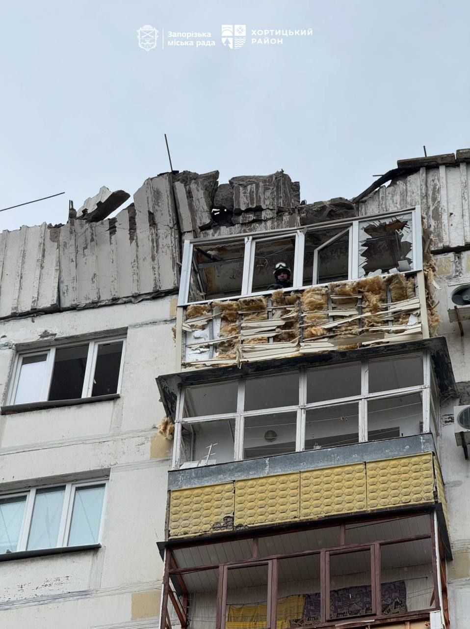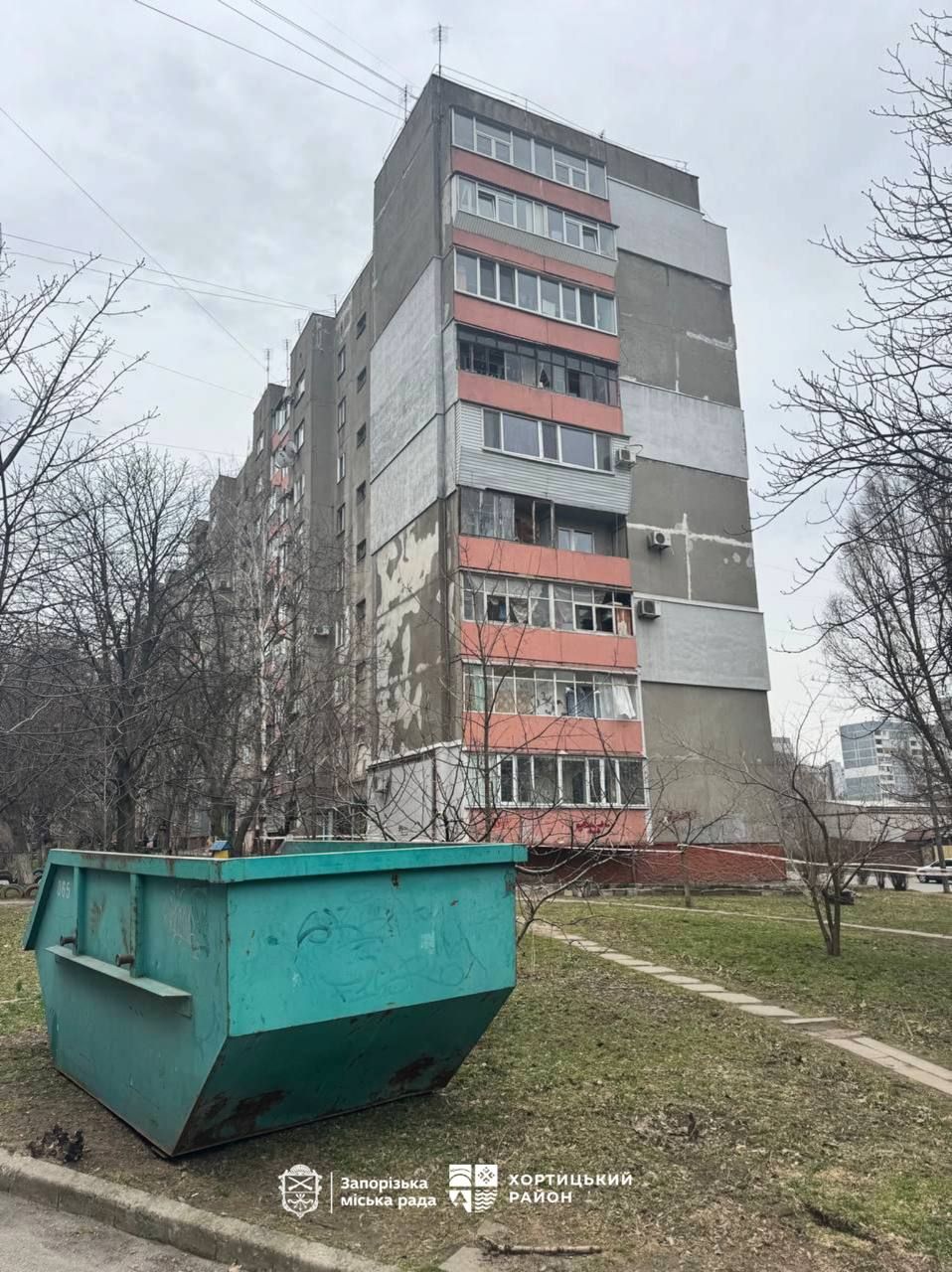 У Хортицькому районі Запоріжжя внаслідок російської атаки зафіксовано влучання у житлову забудову. Пошкоджено щонайменше дев’ять багатоповерхових будинків, одна з квартир зазнала значних руйнувань – безпілотник пробив дах і вдарився у стіну.