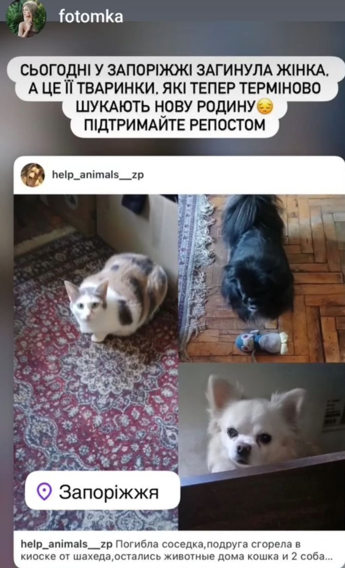 У жінки залишилися домашні улюбленці. Вже забрали пекінеса та котика, але залишилася чіхуахуа. Для неї зараз шукають дім.