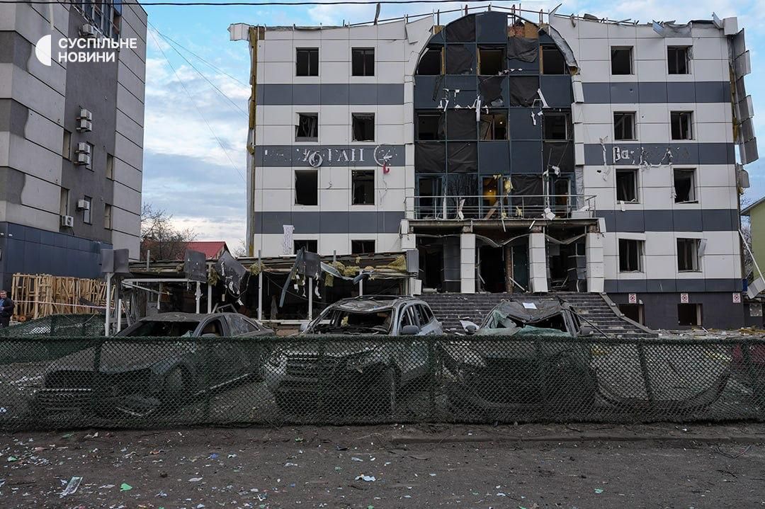 Пошкоджено п’ятиповерховий будинок, частково зруйновано приватний будинок, виникли пожежі в житлових будинках, гаражах і автомобілях, пошкоджено навчальний заклад.